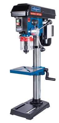 The Scheppach DP19Vario is a compact and versatile table drill press that is perfect for a variety of woodworking, metalworking, and DIY projects. It features a powerful 550-watt motor that can deliver up to 2580 RPM, a variable speed dial with a digital readout, a 1.5-16mm chuck, and a 465mm (18.3") column travel. The DP19Vario also includes a laser guide, a work light, and a dust extraction port.